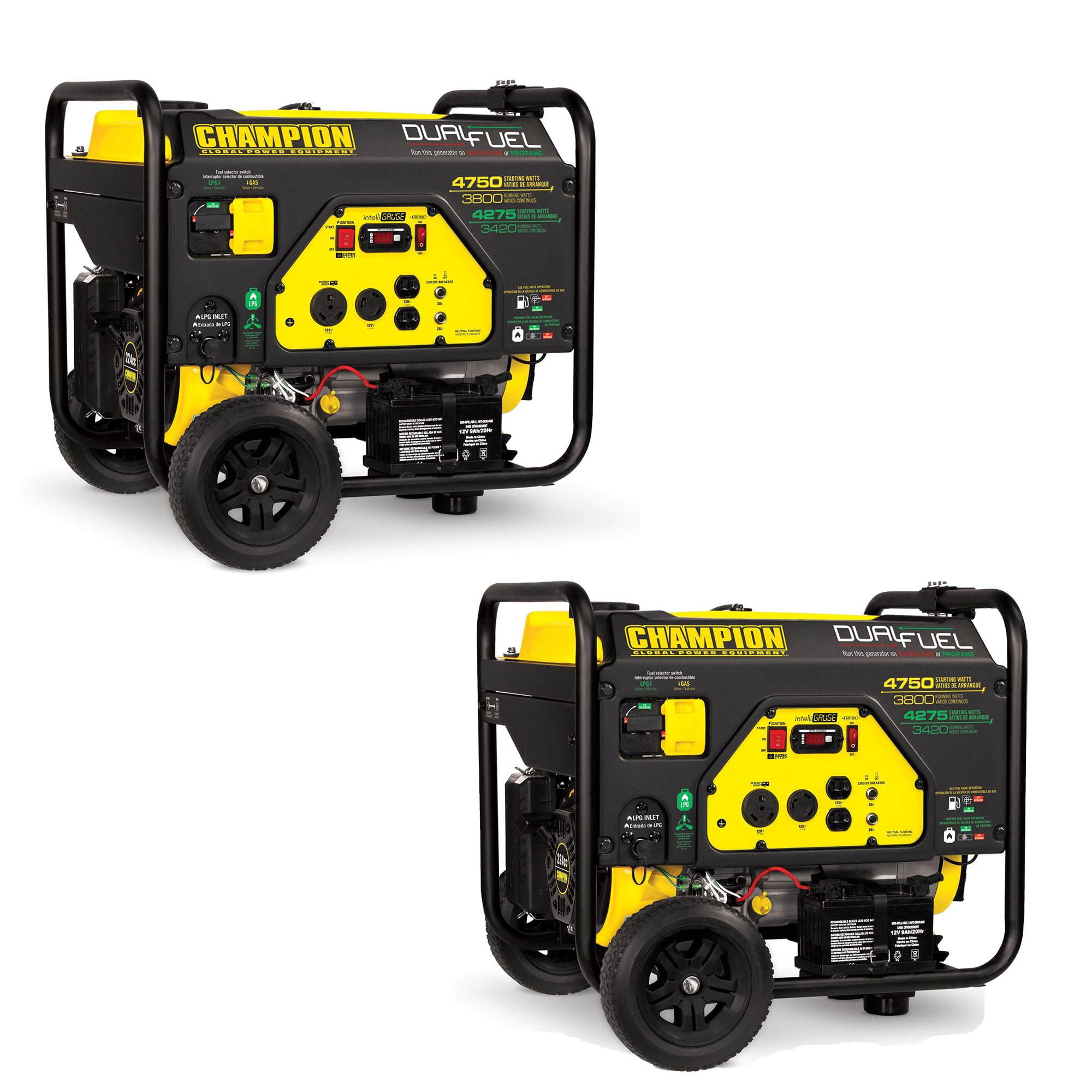 Champion Dual Fuel 3800 Watt Portable Generator : Champion 100307 - 3500 Watt Dual Fuel Portable Generator w ... / Featuring intelligauge, volt guard™ and cold start technology, it provides up to 14 hours of run time on gasoline or 10.5 hours on propane.. What is dual fuel portable generator? Champion power equipment is a market leader in power generation equipment. Champion power equipment is a market leader in power generation equipment. Direct from manufacturer, so you can be certain you are getting the best prices. Direct from manufacturer, so you can be certain you are getting the best prices.